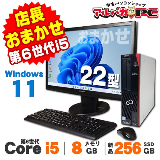 おまかせパソコン 中古 デスクトップパソコン 22型液晶セット 第6世代 Core i5 メモリ8GB 新品SSD256GB Windows11 Office付