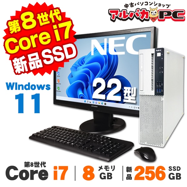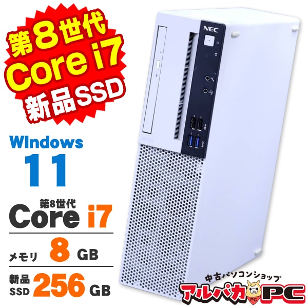 NEC Mate MKH32/L-3 第8世代 Core i7 8700 メモリ8GB 新品SSD256GB DVDROM Windows11 Pro デスクトップパソコン Office付き 中古