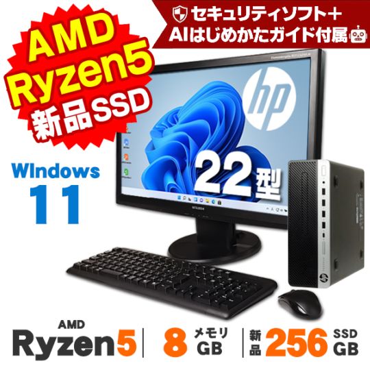【AIかんたんPC】HP ProDesk 600 G4 SF 第8世代 Core i5 8500 メモリ8GB 新品SSD256GB DVDROM Pro デスクトップパソコン Office付き 中古