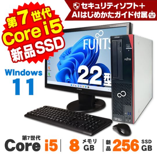 【AIかんたんPC】富士通 ESPRIMO D588/T 第8世代 Core i5 8600 メモリ8GB 新品SSD256GB DVDマルチ Pro デスクトップパソコン 中古