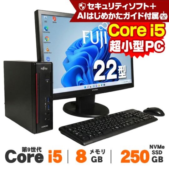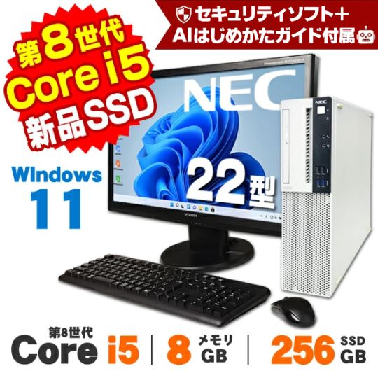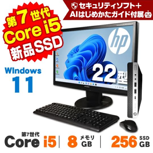 【AIかんたんPC】22型液晶セット ゲーミングPC デスクトップ GeForce GT1030 DELL HP Lenovo Corei5 メモリ16GB SSD512GB Win11 中古