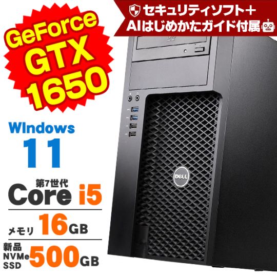【AIかんたんPC】ゲーミングPC デスクトップ GeForce GT1030 DELL HP Lenovo Corei5 メモリ16GB SSD512GB Win11Pro 中古