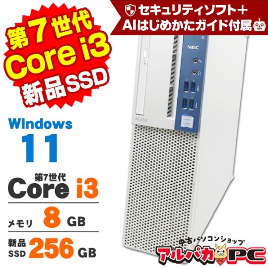 【AIかんたんPC】NEC Mate MKL36/B-3 第8世代 Core i3 8130 メモリ8GB 新品SSD256GB DVDROM Pro デスクトップパソコン 中古