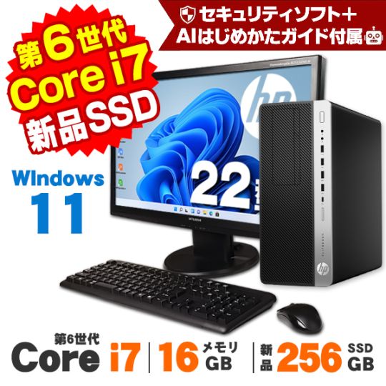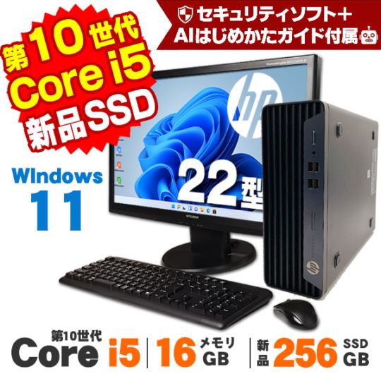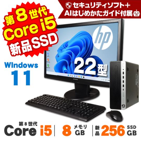 【AIかんたんPC】HP ProDesk 600 G4 SF 第8世代 Core i5 8500 メモリ8GB 新品SSD256GB DVDROM Pro デスクトップパソコン Office付き 中古