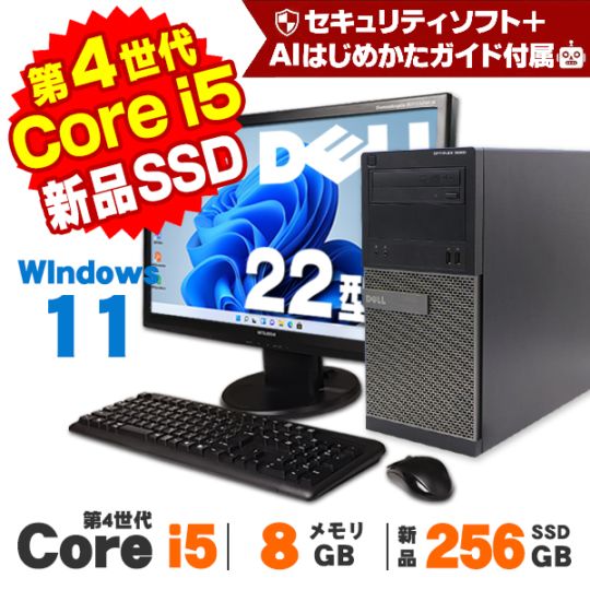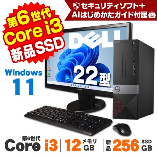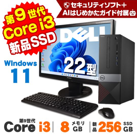 【AIかんたんPC】DELL Vostro 3471 第9世代 Core i3 9100 メモリ8GB 新品SSD256GB DVDROM Pro デスクトップパソコン Office付き 中古