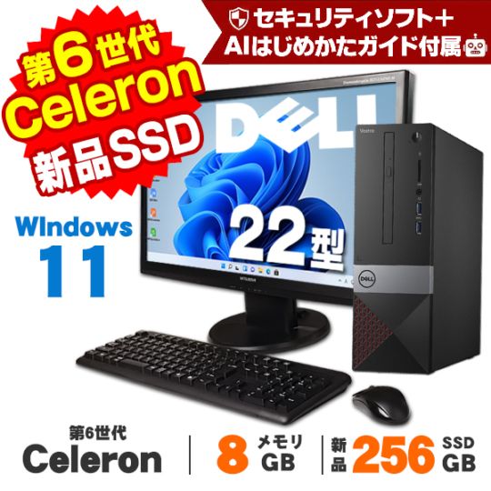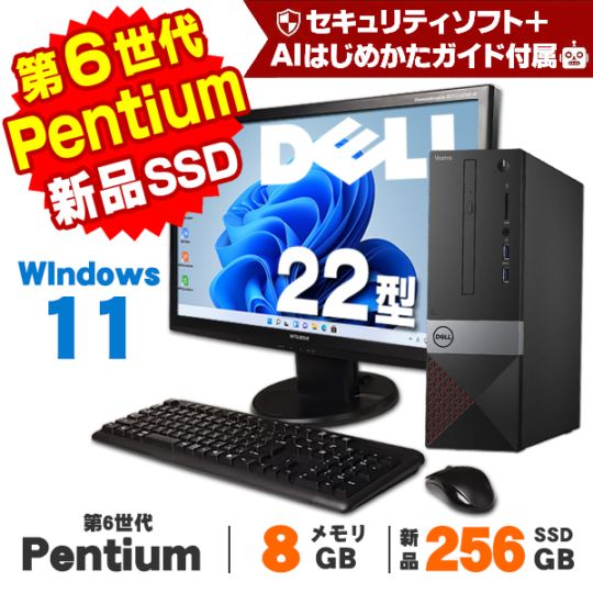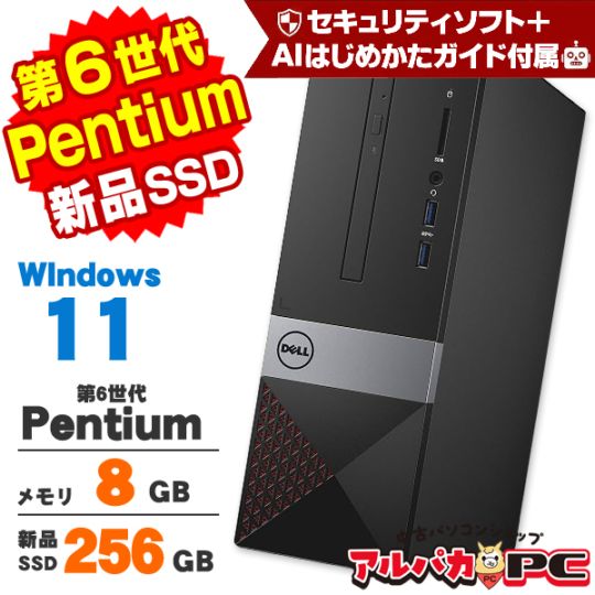 【AIかんたんPC】DELL Vostro 3267 第6世代 Pentium G4400 メモリ8GB 新品SSD256GB DVDROM Pro デスクトップパソコン Office付き 中古