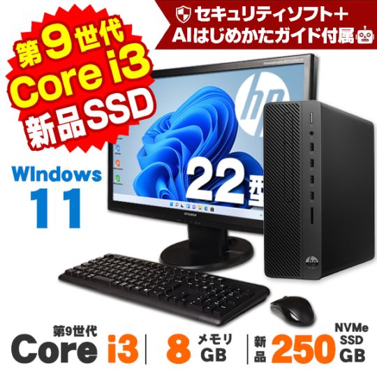 【AIかんたんPC】HP ProDesk 600 G4 SF 第8世代 Core i3 8100 メモリ8GB 新品SSD256GB DVDROM Pro デスクトップパソコン Office付き 中古