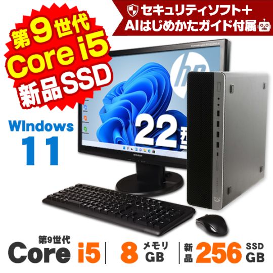 【AIかんたんPC】HP ProDesk 600 G5 SF 第9世代 Core i5 9500 メモリ8GB 新品SSD256GB DVDROM Pro デスクトップパソコン Office付き 中古