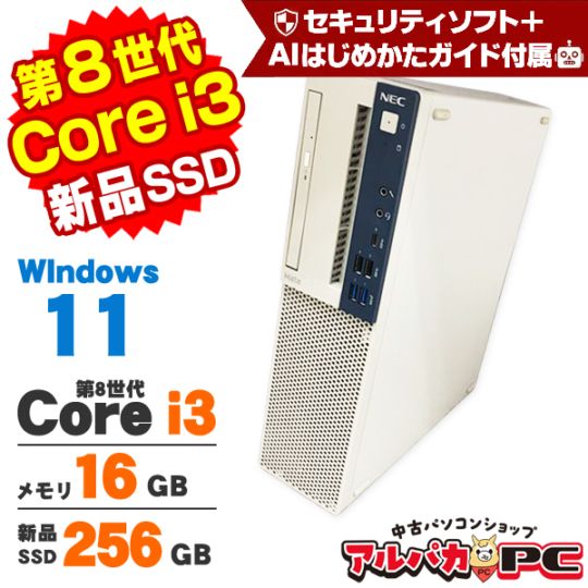 【AIかんたんPC】NEC Mate MKL36/L-3 第8世代 Core i3 8100 メモリ16GB 新品SSD256GB DVDROM Pro デスクトップパソコン Office付き 中古