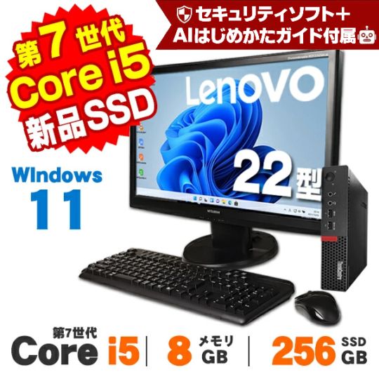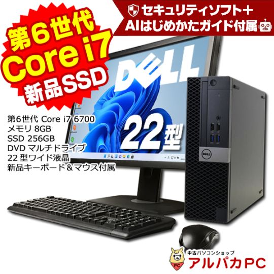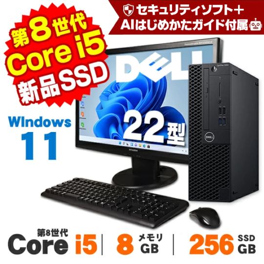 【AIかんたんPC】22型液晶セット ゲーミングPC デスクトップ GeForce GT1030 DELL HP Lenovo Corei5 メモリ16GB SSD512GB Win11 中古