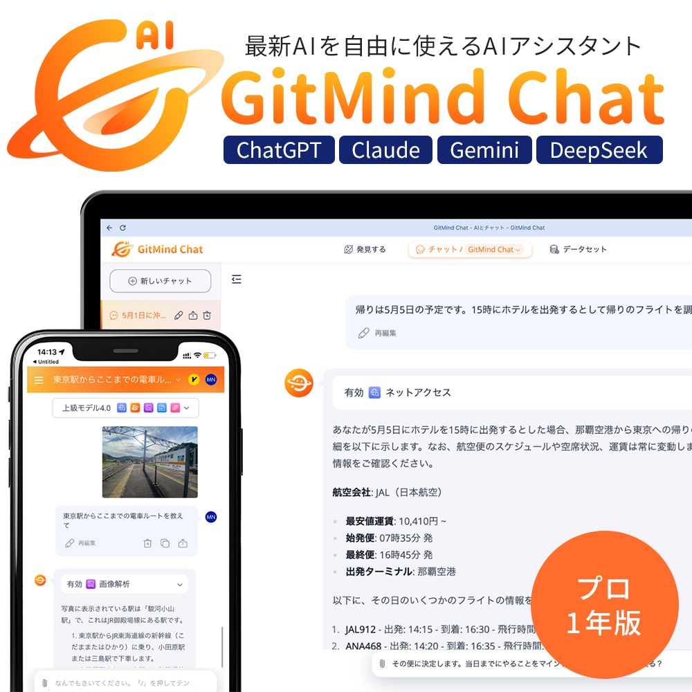 高性能AIアシスタント MEDIA NAVI GitMind Chat プロ 1年版 ChatGPT Claude Gemini DeepSeek ソフトウェア 【ダウンロード版】 中古