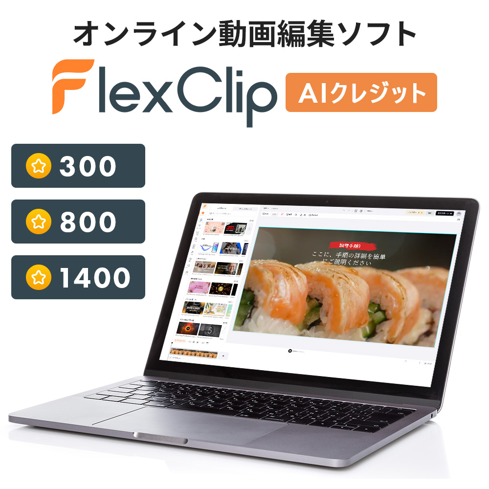オンライン動画編集ソフト PearlMountain FlexClip AIクレジット 動画生成 背景削除 文字起こし テキスト読み上げ 動画翻訳 ソフトウェア 中古