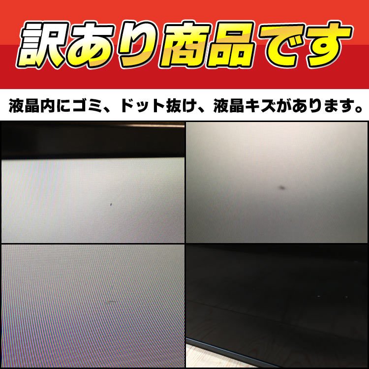 | ご注意 | ・液晶に通常の距離の視聴ではあまり目立たない程度の傷があります。 ・液晶にドット抜けが数点あります。 ・液晶内にゴミがあります。 ・本体に擦り傷など多少の使用感がございます。 |