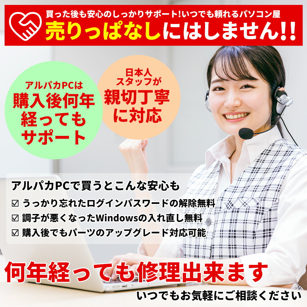 | ご注意 | ・本体に擦り傷や日焼けなど多少の使用感がございます。 ・液晶、キーボードやマウスのカラーやデザインは写真と異なる場合がございます。 ・OSは中古PC再生用にインストールされたものであり、メーカー出荷時とは内容が異なります。 |