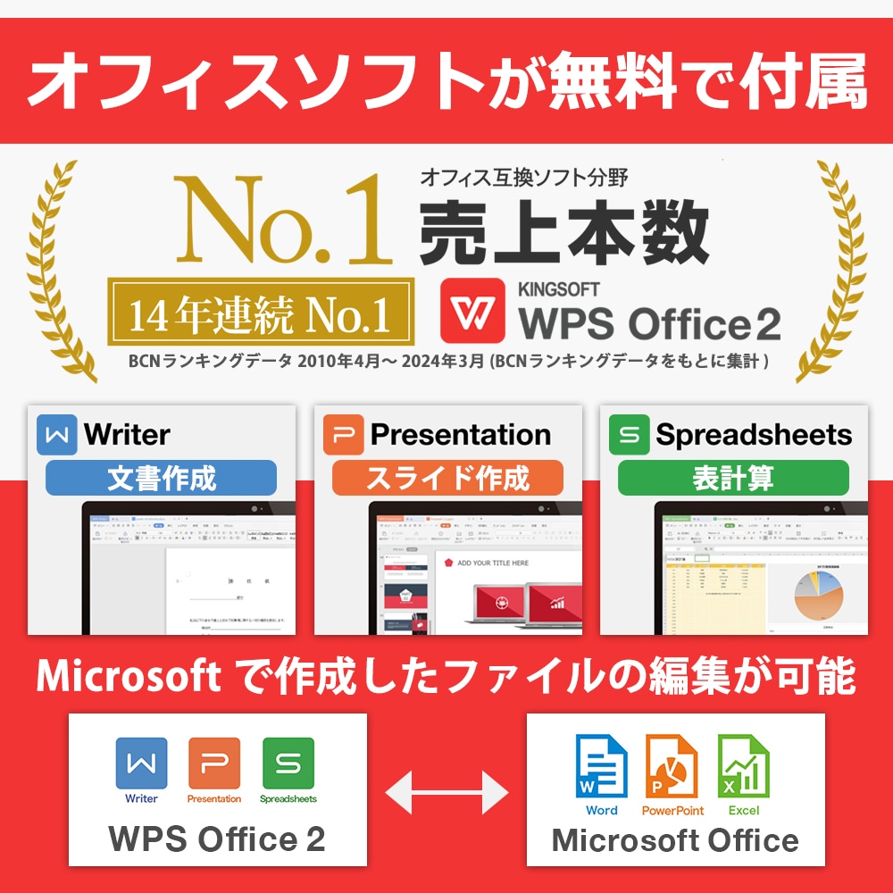 | 付属オフィス | KINGSOFT WPS Office ※同梱のライセンスカードにて認証を行ってください。 |