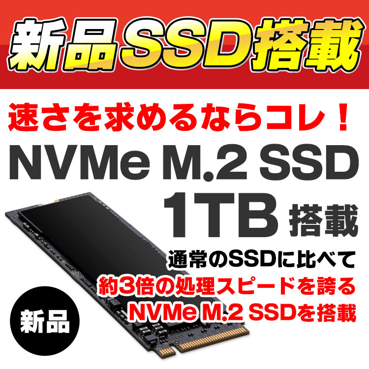 | ストレージ容量 | 新品 NVMe SSD 1TB(1000GB) |