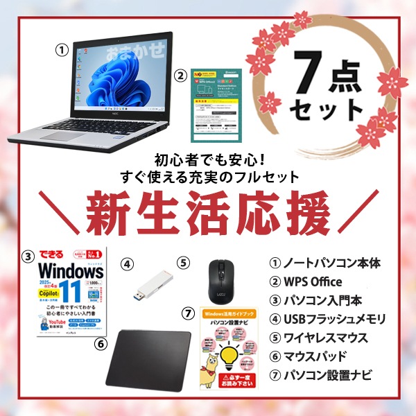| 付属品 | ・ワイヤレスマウス(新品) ・マウスパッド(新品) ・オリジナルパソコン設置ナビ ・新品USBメモリ32GB ・ACアダプタ ※リカバリーはハードディスク内(DtoD)にございます。 |