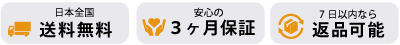 | 保証 | 商品到着後 3ヶ月保証 オプションで延長保証もお受けいたします。 ※お試し返品OK!商品到着後1週間以内であれば、返品分送料および振込手数料のみご負担頂ければ返品をお受けいたします。 |