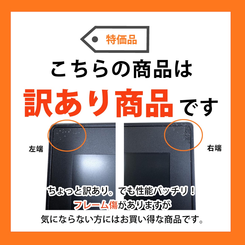 | ご注意 | ・フレームに傷があります。パソコンの動作には支障ありません。 ・中古品のため、バッテリーは保証外となります。ACアダプタを接続してご使用ください。 ・本体に擦り傷や日焼けなど多少の使用感がございます。 ・OSは中古PC再生用にインストールされたものであり、メーカー出荷時とは内容が異なります。 |