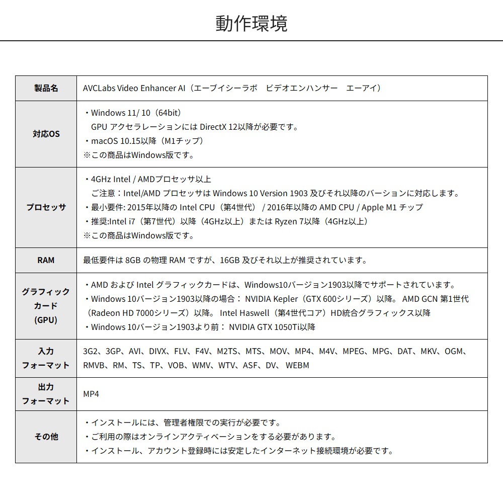 | 製品名 | AVCLabs Video Enhancer AI(エーブイシーラボ ビデオエンハンサー エーアイ) |
