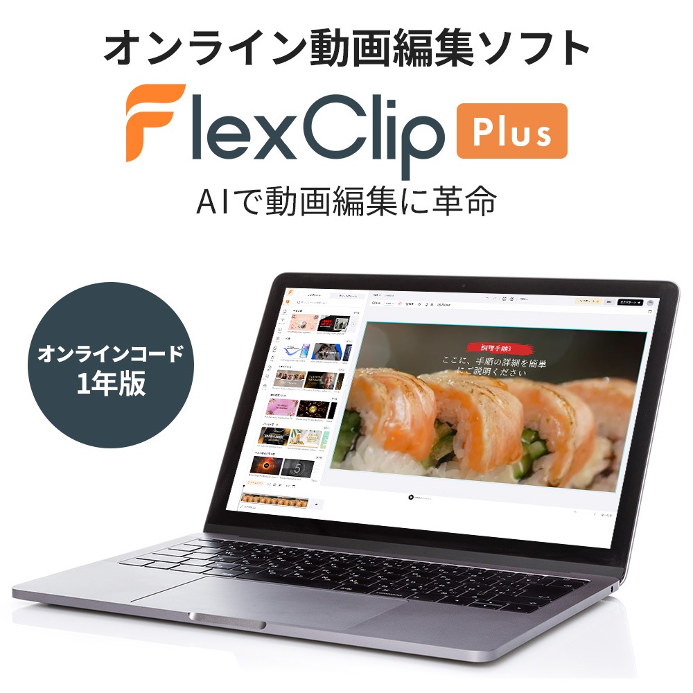 オンライン動画編集ソフト PearlMountain FlexClip Plus 1年版 AI 動画生成 背景削除 文字起こし テキスト読み上げ 動画翻訳 ソフトウェア 【ダウンロード版】 中古