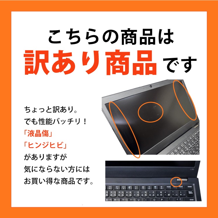 | ご注意 | ・液晶キズ、ヒンジにヒビがあります。 ・中古品のため、バッテリーは保証外となります。ACアダプタを接続してご使用ください。 ・本体に擦り傷や日焼けなど多少の使用感がございます。 ・OSは中古PC再生用にインストールされたものであり、メーカー出荷時とは内容が異なります。 |