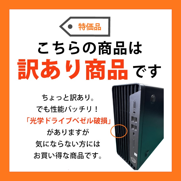| ご注意 | ・光学ドライブベゼル破損があります。 ・本体に擦り傷や日焼けなど多少の使用感がございます。 ・OSは中古PC再生用にインストールされたものであり、メーカー出荷時とは内容が異なります。 |